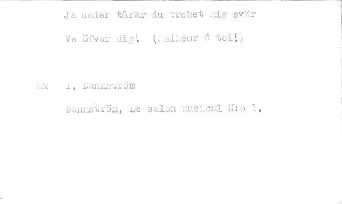 //// Ja under tårar du trohet mig svär Ve öfver dig: (L9.1Leur å toi:j //// Lk 1. Dannström //// Dannström, salön musical N:o 1. ////