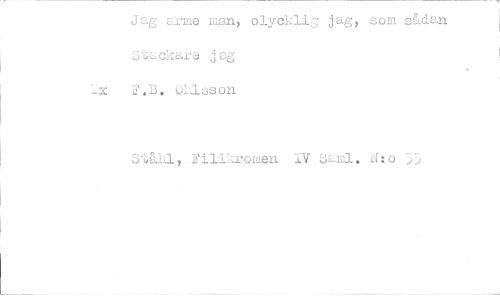 //// Jag arme man, olycklig jag, som sådan Stackare jag //// Ix F.B. Ohlsson //// Stnl, l'ilihromen IV Saml. N:0 33 ////