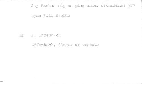 //// Jag Bachus såg en gång under drös yra //// ijmn till Jachns //// hk J. Offenbach //// Uffenbach, Sånger ur urpheus ////
