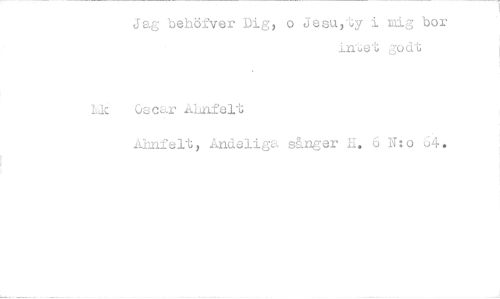 //// Jag behöfver Dig, o Jesu,'Gy i nig bor //// inet godt //// Lk Oscar Ahnfelt //// Ahnfelt, Andeliga sånger H. 6 N:o 64. ////
