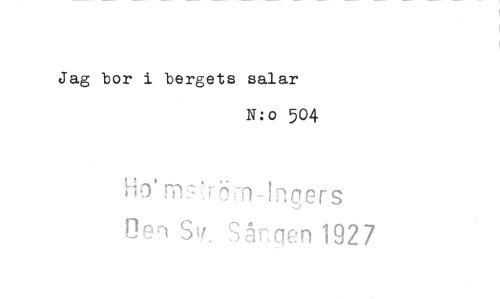 //// Jag bor i bergets salar //// N:o 504 //// Hg" -* gers //// Pe71Sir. Sången 1927 ////