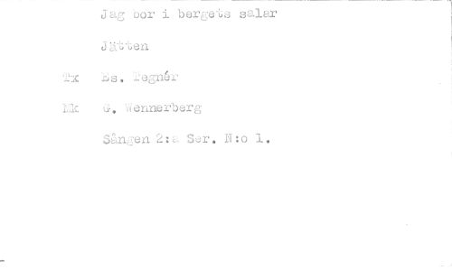 //// Ja, bor i bergets salar Jätten //// 2x ås. 2egn6r //// LIA G. Wennerberg //// Sonen 2:a Ser. N:0 1. ////