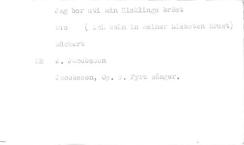 //// Jag bor uti isin älsklings bröst //// DIO ( wolin in Aeiner Lieb-ten Brust) //// räckert //// i,2k J. Jacobsson //// Jacobsson) Op Fyra sånger. ////
