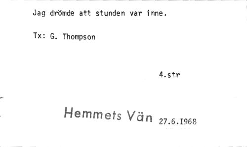 //// Jag drömde att stunden var inne. Tx: G. Thompson //// 4.str //// Hemmets Vän 27.6.1968 ////