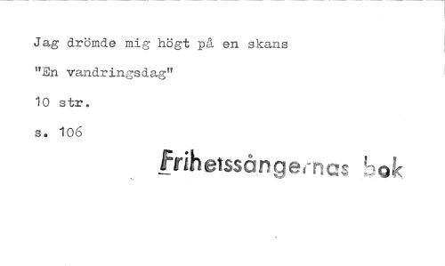//// Jag drömde mig högt på en skans "En vandringsdag" //// 10 str. //// s. 106 //// Frilletssångecn inok ////