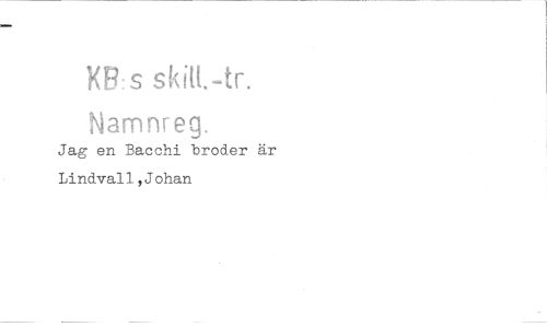 //// XR: s //// Namnreg. //// Jag en Bacchi broder är Lindvall ,Johan ////