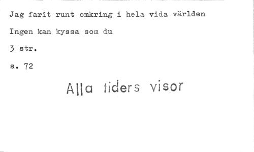 //// Jag farit runt omkring i hela vida världen Ingen kan kyssa som du //// 3 str. //// s. 72 //// Alla liders visor ////