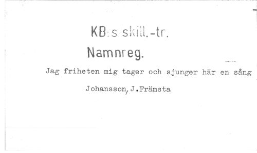 //// KB: s sh1L-tr. //// Namnreg. //// Jag friheten mig tager och sjunger här en sång Johansson J.Främsta ////