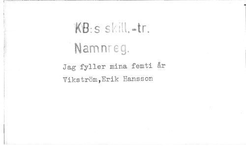 //// S skdt..tr. //// Namnreg. //// Jag fyller mina femti år Vikström,Erik Hansson ////