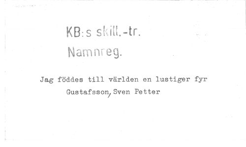 //// KB:s shR.-tr. //// Narrnu e1. //// Jag föddes till världen en lustiger fyr Gustafsson Sven Petter ////