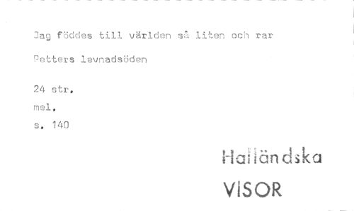 //// Jag föddes till världen så liten och rar Petters levnadsöden //// 24 str. mel. //// s. 140 //// Haiiändska //// VISOR ////