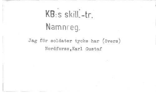 //// KB:s //// Namnreg. //// Jag för soldater tycke har (övers) //// Nordforss,Karl Gustaf ////