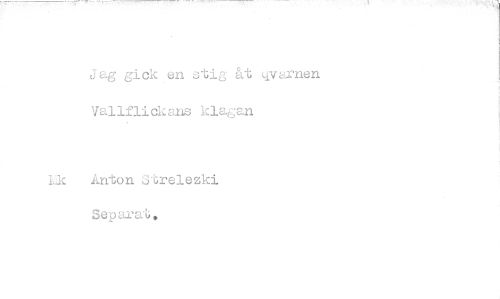 //// Jag gick en stig åt :ivarnen Vallflickans klagan //// Lk Anton Strelezki Separat. ////
