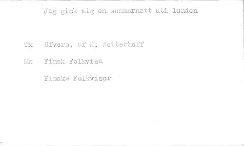 //// Jag gick mig en sommarnatt 11-1;i ludden //// öfvers, af K. WeIterhoff I2k Finsk 'Folkvisa //// Finska Folkvisor ////