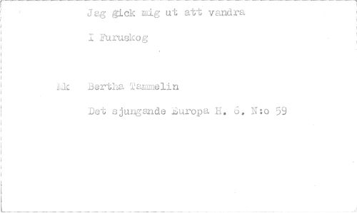 //// Jag gek mig ut att vandra I Furuskog //// 1,1k Be,rtha Tannelin //// Det sjungande-..r;uropa. H. 6. N:o 59 ////