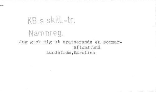 //// KB: s skitt.-tr. //// Namnreg. //// Jag gick mig ut spatserande en sommar- //// aftonstund //// Lundström, Karolina ////