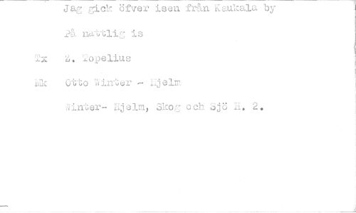 //// Jag gick öfver isen från Kaukala by £ nattlig is //// Tx Z. //// -kåk Otto Vvinter Ljelr. //// Vinter- Hjelm, Skog och äjö E. 2. ////