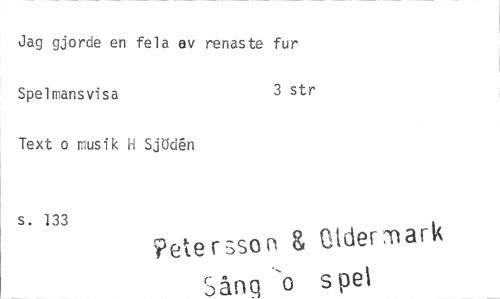 //// Jag gjorde en fela ev renaste fur //// Spelmans visa 3 str //// Text o musik H Sjöd61 //// s. 133 9eteNson g Q.1dermark //// Sång o spel ////