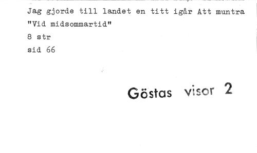 //// Jag gjorde till landet en titt igår Att muntra "Vid midsommartid" //// 8 str //// sid 66 //// Göstas visor 2 ////