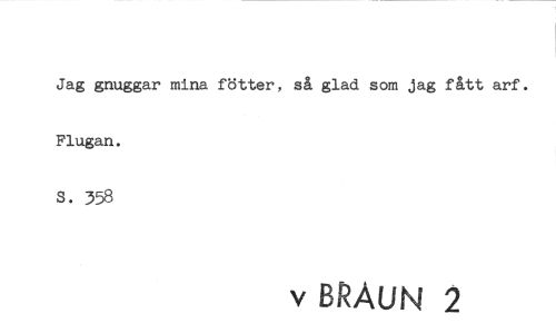 //// Jag gnuggar mina fötter, så glad som jag fått arf. Flugan. //// S. 358 //// v BRAUN 2 ////