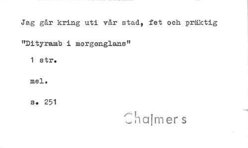 //// Jag går kring uti vår stady fet och präktig //// "Dityramb i morgonglans" 1 str. //// s. 251 //// :palmer s ////