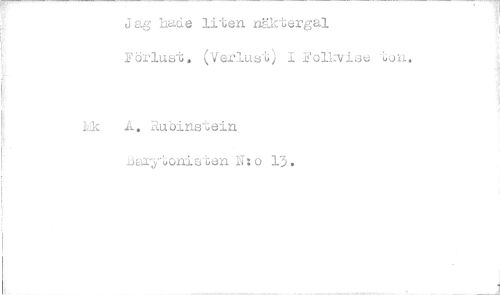 //// Jag hade liten näktergal //// Förlust. (Verlust) I Folkvise ton. //// hk A. Rubinstein äarytonisten Nto 13. ////