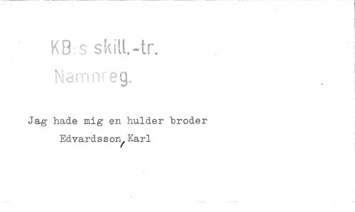 //// KB:s skitt.-tr. //// g. //// Jag hade mig en hulder broder Edvardsson/Karl ////
