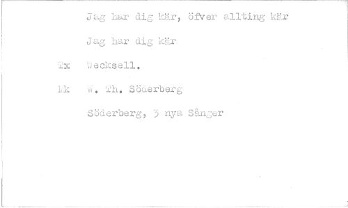 //// Jag bar dig kär, öfVer allting kär Jag har dig kär //// iX Uecksell. //// Ide '6. 'a, Söderberg //// Söderberg, 3 nya Sånger ////