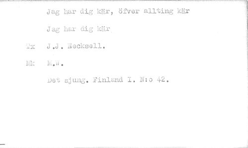 //// Jag har dig kär, öfVer allting kär Jag har dig kär. //// 2x j.j. jecksell. //// Det sjung. Finland 1. N:o 42. ////