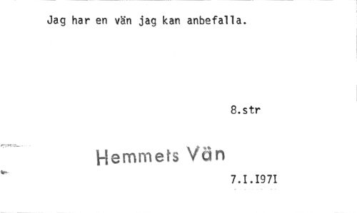 //// Jag har en vän jag kan anbefalla. //// 8.str //// Hemmets Vän //// 7.1.1971 ////