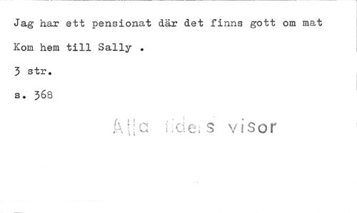//// Jag har ett pensionat där det finns gott om mat Kom hem till Sally . //// 3 str. //// s. 368 //// Lå //// I oes visor ////