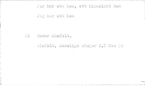 //// J ax har et-t hem, ett himmelskt hem Jag har ett hem //// Ile Oscar Ahnfelt. //// Andeliga sånger Ha N:o 93 ////