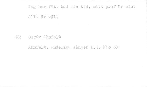 //// Jag har fått bud min tid, mitt prof är slut Allt är vält //// Ile Oscar Ahnfelt //// Atnfelt, ,,,ndeliGa sånger 11.3. N:0 30 ////