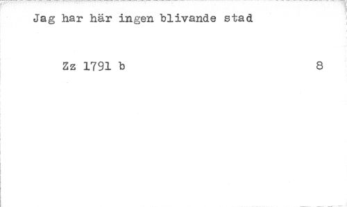 //// Jag har här ingen blivande stad //// Zz 1791 b 8 ////