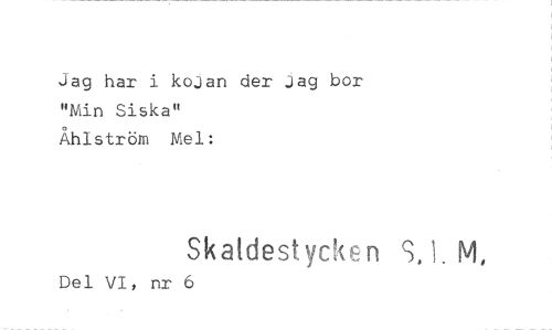 //// Jag har i kojan der Jag bor "Min Siska" //// Åhlström Mel: //// Skatclestyck n S,1. M, //// Del VI, nr 6 ////