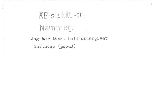 //// KB:s sLin.-tr //// Namn i - eg. //// Jag har tänkt helt undergivet Gustavas (pseud) ////
