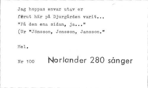 //// Jag hoppas envar utav er //// förut här på Djurgården varit... "På den ena sidan, ja..." //// (Ur "Jönsson, Jonsson, Jansson." //// Mel. //// Nr 100 Norlander 280 sånger ////