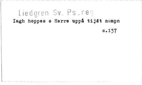 //// Liedgren Sv. Ps.re //// Iagh hoppes o Herre uppå tijdt nampn //// s.137 ////
