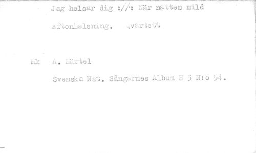 //// Jag helsar dig ;fil När natten mild Af'6on.l.telsrri.ng. varet //// svenska Nat. Sångarnes Album H 5 N: o 54. ////