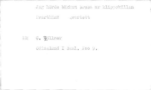 //// Jag Lärde bäckan brusa ur klipT,olrg,llan Lvar-Vr? //// Lk G. .911ner //// Odinsluiid 1 "Sabla.. A:o 9. ////