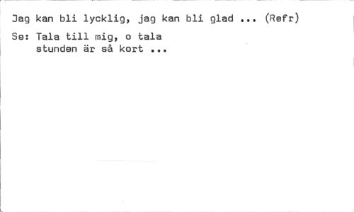 //// Jag kan bli lycklig, jag kan bli glad ... (Refr) //// Se: Tala till mig, o tala stunden är så kort ... ////