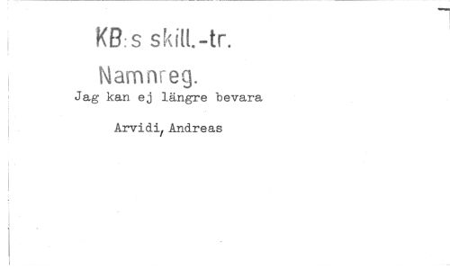 //// KB:s skill.-tr. //// Namnreg. //// Jag kan ej längre bevara //// Arvidi Andreas ////