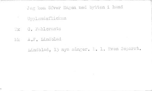 //// Jag kom öfver ängen med bytten i hand Upplandsflickan //// C. 2ahlcrantz //// Lk Å.F. Lindblad //// lindblad, 13 nya sånger. 1. sven Separat. ////
