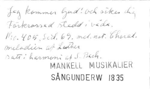 //// 1-0;i4~K äti2.414, t&. //// i o cf. 6,, //// oyki.„"oeå.". 4,24A //// 1. f. ?3‘64. //// MANKELL MUSIKALIER //// SÅNGUNDERW 1835 ////