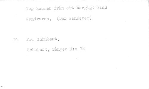 //// Jag kommer från ett .bergigt land //// undraren. (Der derer) //// Lik Fr Schubert. //// chubert Sånger N: o 12 ////
