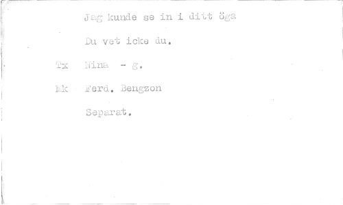 //// Jag kunde se in i ditt öga Du vet icke du. //// (.Cx 14ina - g. //// ik iferd. Bengzon //// Separat. ////