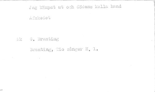 //// Jag kämpat ut och dödens kalla hand Afskedet //// Ik G. Branting //// Branting, r2io sånger H. 1. ////