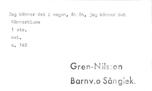 //// Jag känner det i magen, åh åh, jag känner det Kännarblues //// 1 str. //// mei. //// s. 142 //// Gren-Nils-on //// Barnv.o Sångek. ////