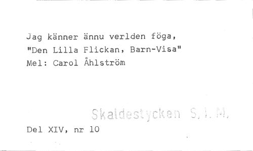 //// Jag känner ännu verlden föga, "Den Lilla Flickan, Barn-Visa" Mel: Carol Åhlström //// Del XIV, nr 10 ////
