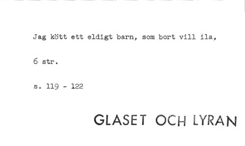 //// Jag kött ett eldigt barn, som bort vill ila, 6 str. //// s. 119 - 122 //// GLASET OCH LYRAN ////